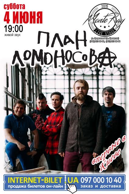 План Ломоносова состоится 4 июня 2016, 19:00, суббота в тест. С помощью сервиса internet-bilet.ua, Вы сможете с легкостью забронировать, заказать и купить билеты на интересующий Вас концерт, спектакль, оперу, балет, мастер-классы, спортивные и детские мероприятия, оплатив их самым удобным для Вас способом: через интернет банковской картой VISA/MasterCard, наличными или курьером, если сделаете заказ билета c доставкой.